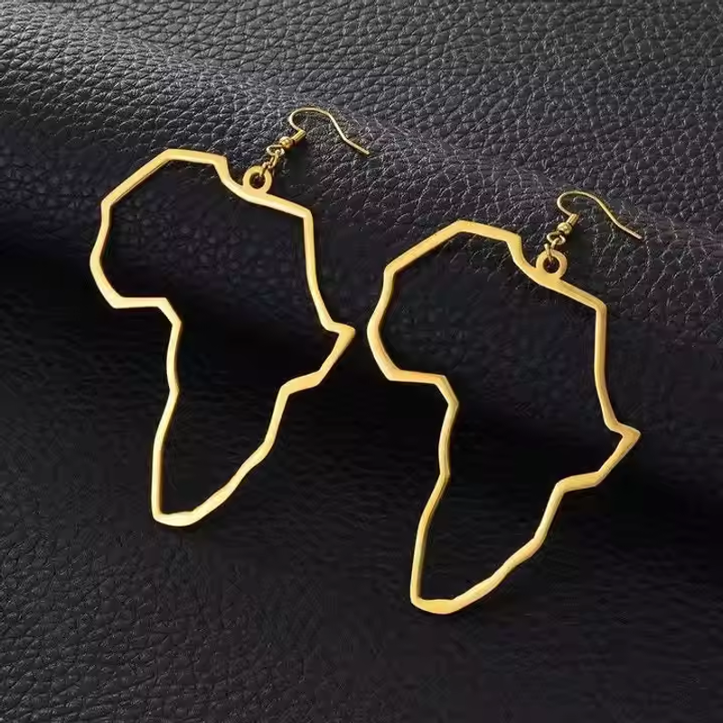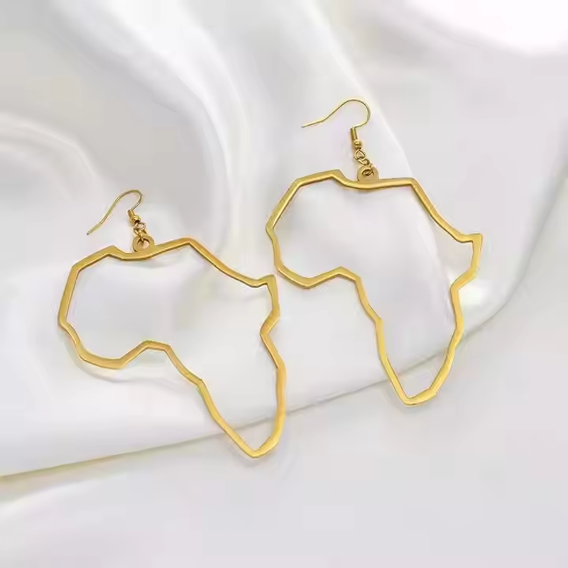 Africa Map Fashion gold stainless steel earrings Buy 1 pair get 1 pair free