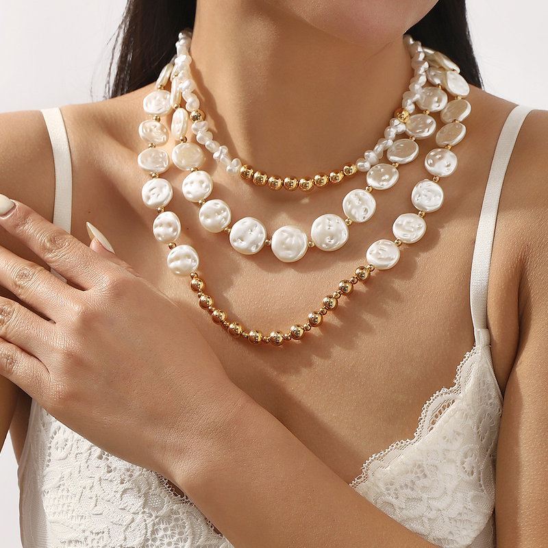 Draweye Imitation Pearls Necklaces for Women Multilayered American Retro Fashion Jewelry Punk Style Simple Collares Para Mujer