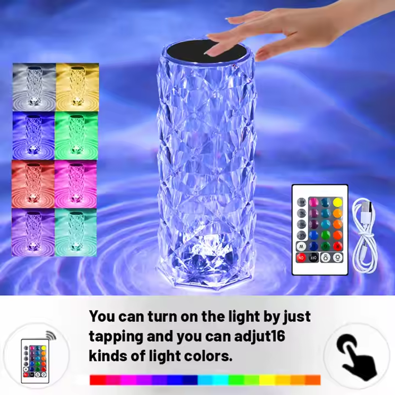 Modern Luxury LED Light Table Lamp Crystal Touch Control Decorative Lamp for Bedroom & Living Room Battery Operated