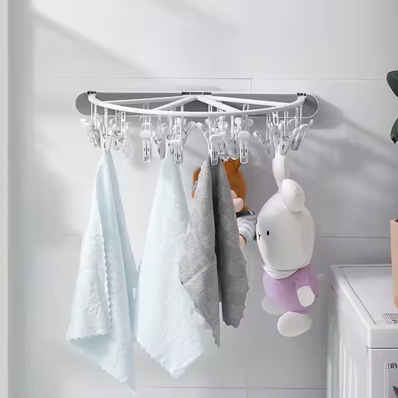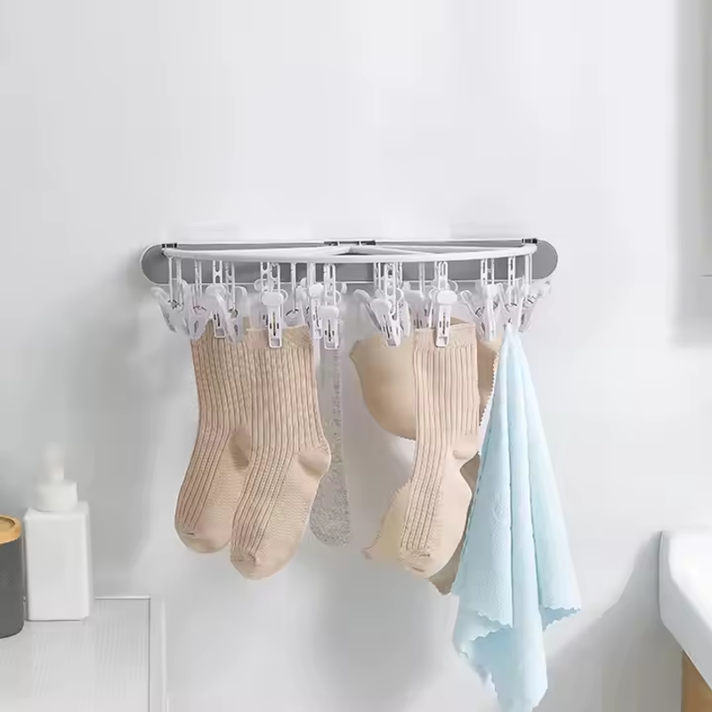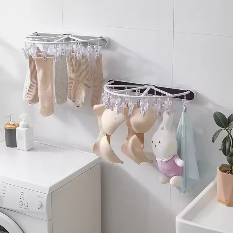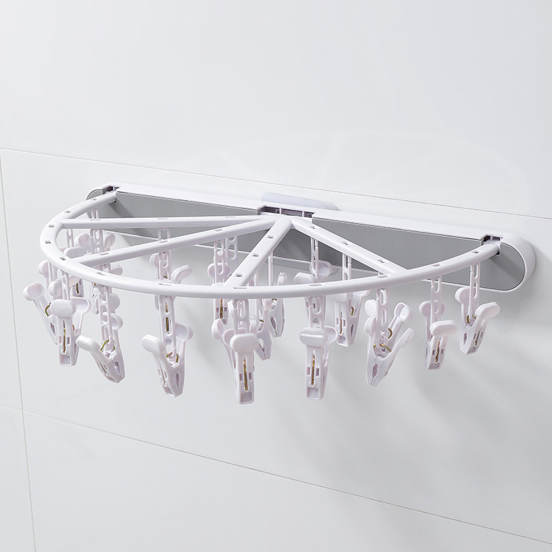 Wall Mounted Collapsible 24 Clips Semi Circular Stackable Sock Hanger Underwear Drying Hook
